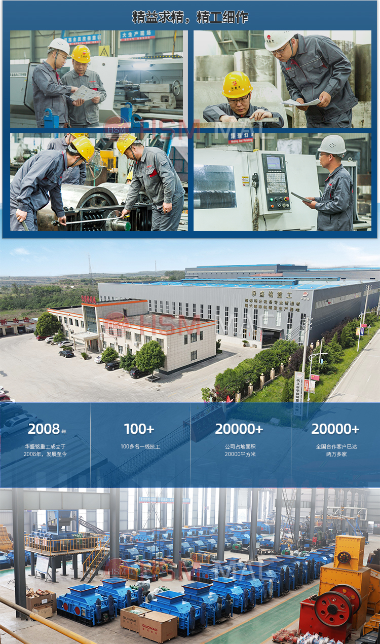 4.華盛銘高鉻錳鋼耐磨材質含有稀有金屬輥皮已申請國家專利,出料粒度可以精確調整已申請國家專利,液壓對輥破碎機輥筒已經申請國家專利。